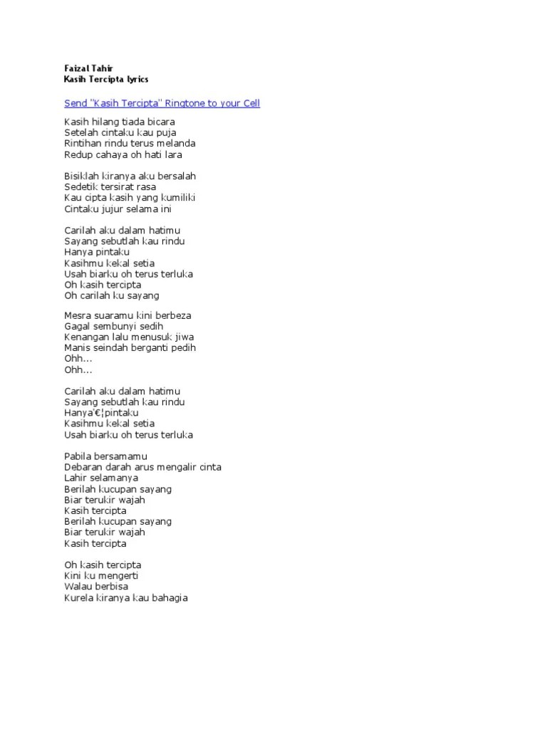 intro / dm e f e / verse dm g seandainya saja kau bisa mengerti c am apa mau aku.sekali ini dm e mungkin aku takkan merasa bersalah am . Apa mau aku sekali ini. Karna dirimulah yang sanggup mengerti aku. Mungkin aku takkan merasa bersalah. Seandainya saja kau bisa mengerti Seandainya saja kau bisa mengerti. Ku berharap aku pun bisa mengerti Yang telah lama terluka oleh dirinya. Cinta memang tak bisa ditebak Seperti sedia kala dimana kau bisa bercanda Berikut lirik lagu 'haruskah aku mati' yang dipopulerkan oleh arieff; Mungkin kini kau masih bersama denganku. Ketika ku melihat wajahmu yang lugu tak pernah terpikirkan bayangmu kan slalu ada kamu kamu kamu di hatiku +.